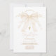Featuring a soft cream watercolor bow with delicate pearls and florals, paired with a simple gold cross and elegant handwritten lettering.