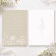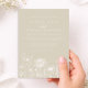 The warm cream background evokes the look of fine paper and creates a calm, sophisticated tone, while the airy typography keeps the layout light and balanced. A subtle wildflower illustration along the bottom adds graceful detail without overwhelming the design. The reverse side includes a personalized monogram and date, offering a meaningful and keepsake-worthy finish.