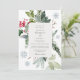 O convite para casamento no tema Elegante Winter apresenta um quadro de ouro rodeado por cor d'água evergreen e pinho. Personalize com suas informações ou clique em "Clique para personalizar mais" para editar estilos de fonte, tamanho e cores.