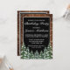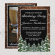 Convite de aniversário com sua foto e número personalizado. Madeira marrom russa, fundo nevando e floresta nevada. Cozy Vintage country. Há mais itens disponíveis neste estilo na nossa loja. Você pode editar a design, alterar cores, fontes e adicionar texto extra clicando no link "personalizar mais".
