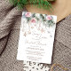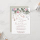 Neve apaixonada por chá de panela de inverno editável convite para modelo de convite instantâneo descarregamento digital instantâneo, pastel d'água rosa e cinza galhos de pinheiro de inverno com flocos de neve de jardim cristais e rosas cor-de-rosa escamoteadas modernas e casuais chás de panela de inverno