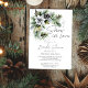 Neve apaixonada por chá de panela de inverno editável convite para modelo de convite instantâneo descarregamento digital instantâneo, galhos de pinheiros com cor d'água com poinsettia branca chá de panela de inverno moderna, fonte casual