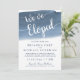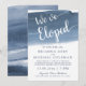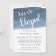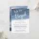 Crie uma impressão única nos convidados da sua futura festa de recepção com este convite atraente. Ele apresenta um fundo azul manchado em estilo aquarela. Os seus detalhes ficam no centro em uma cor azul-marinho escuro que combina com o esquema de aquarela.