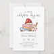 Cute adorable modern winter baby shower theme, Holiday baby shower theme, design feature red watercolor winter floral storybook decor with Christmas santa hat, winter snowflake ornaments, winter flower pine cone and script calligraphy typography "The new chapter begins". you can customize your own unique text and color.