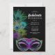 Este convite impressionante inclui penas de pavão com uma máscara mardi Gras festiva. Inclua um itinerário detalhado nas costas! Veja a coleção inteira para mais itens correspondentes!