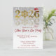 This elegant illustration features the year 2026 in shiny golden typography. The zero is replaced by a detailed gold snowflake, while the final number is decorated with a red Santa hat. The design has a luxurious and festive appearance, making it ideal for a New Year 's Eve Party invitation.
