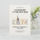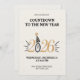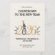Front view of a New Year's Eve invitation card. It features "Countdown to the New Year 2026" with a party hat graphic. Event details include date, time, and address. The tone is celebratory and inviting.