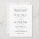 Convite de casamento elegante com fontes de serifa tradicionais em um layout simples.