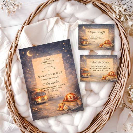 Convites Night Sky Little Firefighter Baby Shower