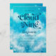 Cartão de convite de aniversário Dreamy com ilustração aquosa do céu azul com estrelas e nuvens. O texto diz "Estamos na Nuvem Nove." Perfeito para o 9º aniversário do seu filho.