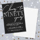 The party details are arranged neatly at the bottom in classic white serif fonts, keeping the layout minimal and refined. The invitation has sleek black backgrounds on the front and white on the back. All colors can be customized to match your theme or personal style.