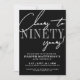 Celebrate in style with this modern elegant Ninetieth Birthday Party Invitation, perfect for marking a milestone in a chic, timeless way. The design features a large “NINETY” in light gray serif font at the top, with white script fonts above and below reading “Cheers To Ninety Years!” for a stylish, celebratory look.