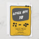 Uma festa divertida e divertida de aniversários de criança, perfeita para videogame e jogador de console com uma caixa fofa de um jogo de vídeo em amarelo editável e cor de cinza e padrão de pixels quadrados no verso.