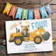 Precisa de ideias de festa de aniversário de construção para o seu filho no seu quarto aniversário? Este divertido e fofo convite para fotos de festa de aniversário para meninos com um tema de construção, apresentando uma ilustração de um bulldozer de construção e um título divertido: "Nível Até Quatro" é apenas o bilhete. Celebre seu garotinho com este convite de construção que fará seu homenzinho feliz, se ele é louco por todas as coisas da construção. O perfeito convite de aniversário de construção da quarta festa de aniversário que você pode personalizar completamente.