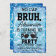 A teen boys "Bruh" themed birthday invitation using cool typography. A custom kids "no cap, pizza, swimming and cake " teenage boys birthday pool party invitation design perfect for any teens birthday party theme. Customize this "Bruh" birthday invitation with your own text and make it your own!