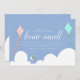 um texto branco sobre azul nas nuvens com pipas e pássaros para um chá de fraldas de menino ou menina