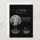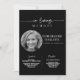 Este convite apresenta um estilo minimalista simples e moderno com belas caligrafias e fontes sans serif e serif em um fundo preto. Você pode personalizar com uma foto do seu ente querido e informações sobre o funeral/memorial. Você pode personalizar o convite para qualquer maneira que você gostaria de lembrar e honrar a memória de seu ente querido. Basta notar que a expressão "em amor", "serviço" e "recepção" não pode ser editada. Você pode mudar a cor ou removê-la do anúncio do convite para o funeral do memorial, se quiser. Basta clicar em personalizar o convite.