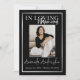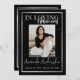 Uma maneira sincera e digna de honrar e lembrar o seu amado. Projetado com o máximo cuidado e atenção aos detalhes, este convite combina a elegância eterno da prata com a solenidade do negro, criando uma lembrança verdadeiramente refinada e respeitosa. A personalização está no cerne deste convite, permitindo que você honre a memória de seu ente querido de uma forma única. A frente do convite é adornada com a frase "In Loving Memory," um lembrete gentil do profundo vínculo que você compartilhou. O elegante design cria um ambiente sereno, definindo o tom para um serviço memorial significativo e sincero.