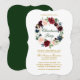 Elegante Watercolor Burgundy Floral Wreath Convite de festas de Natal. Inclui belos rosas e verde botânico. Estilo do suporte. Dourado Script.