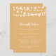Esta noite amarela antes do convite de janto de ensaio é perfeita para um evento rústico. O design apresenta belas luzes de cordas pintadas manualmente em um fundo amarelo.