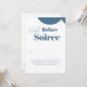 Ponha o tom para uma noite memorável com a nossa noite antes do Design Azul Soiree Pastel. O fundo branco calmante proporciona a canvas perfeita para o elegante texto azul pastel. Capture detalhes essenciais como data, hora, local e código de vestimenta, garantindo que seus convidados estejam bem informados. Uma pequena e doce mensagem de boas-vindas adiciona um toque caloroso ao convite, criando antecipação para a encantadora celebração que se avizinha.