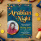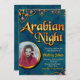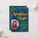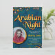 Entre num mundo de mistério e encanto nesta convite para Noite Árabe. Este convite foi feito especial usando uma cor de fundo cativante com decorações de ouro e diamante complementares para capturar a vibração e o encanto de uma festa temática árabe.