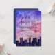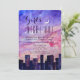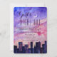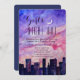 Este convite está canalizando Carrie, Charlotte, Samantha e Miranda - perfeito para garotas da cidade! É uma design para sua solteira especial, festa de galinha, noite de saída de menina ou outra ocasião especial. Um centro de aquarela (talvez Chicago, Nova Iorque, Los Angelos?) ao fundo. Acima está uma maravilhosa representação aquática de um pôr do sol pastel com blues, pinks e cremes macios, unidos a uma lua crescente e uma dica de estrelas brancas. Mostrado aqui em papel branco, mas pode facilmente ser mudado para kraft, creme ou metálico.