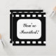 Compartilhe da notícia de uma noite de cinema com este divertimento, filme temático convidam. Uma parte quadrada de filme preto e branco é enchida com a informação para seu partido. Datilografe simplesmente dentro a informação correta.