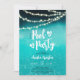 Faça um salto com as nossas legal luzes de cordas noturnas. Convites de 16 anos! Apresentando uma corda amarela brilhante acende uma massa de água piscina em azul, turquesa com uma engraçada moderna letra e corações do pincel. . Perfeito para uma festa de aniversário Doce 16 ou qualquer lugar de verão.
