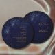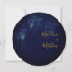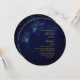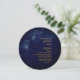 Douradas manchas astrais, dando a impressão de estrelas no céu, brilham acima das palavras sobre um fundo azul. Um tema moderno para um convite de casamento na moda. Altere facilmente as informações para o seu próprio design personalizado.