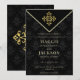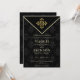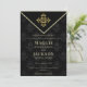 O convite para casamentos de chic Elegante e na moda à noite foi feito em um fundo preto padronizado com um emblema de ouro.