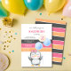 Adoráveis convites de aniversário para crianças com pinguim fofo com balão, ideais para a festa de aniversário das suas meninas!