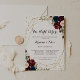 Este ouro geométrico cai na noite anterior ao convite de janto de ensaio é perfeito para uma simples noite de família e amigos antes do casamento se jantar. A design apresenta marinho de aquarela pintada à mão artística azul, burgundy, vermelha, rosas de pincel e peônias com folhas verdes elegantes, inspirando a colorida beleza do outono idílico.