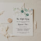 Esta noite floral de ouro rústica antes do convite de janto de ensaio é perfeita para uma noite simples antes que a família do casamento e os amigos se jantem. Este design artístico apresenta folhagem verde de ouro desenhado à mão e cor d'água eucalipto, inspiradora beleza natural.