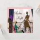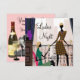 Paisagem urbana elegante, convite de festa para as senhoras com taças de vinho. Este convite divertido e sofisticado para a noite das senhoras é facilmente personalizado para o seu evento, adicionando os detalhes do evento, estilo de fonte, tamanho e cor da fonte e texto.