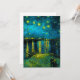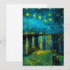 Cartão com a pintura a óleo Noite Estrelada sobre o Ródano (1888) de Vincent van Gogh. Estrelas amarelas brilhantes decoram o céu noturno azul enquanto um casal passeia pela margem de um rio em Arles. Um presente perfeito para fãs do Pós-Impressionismo e da arte holandesa.