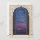Entre num mundo de romance e encanto com este convite de casamento requintado, apresentando uma bela e ornamentada janela arqueada marroquina que se abre para um céu noturno estrelado deslumbrante. Os detalhes intricados dourados e azuis do arco evocam um senso de elegância atemporal e charme exótico, enquanto as luzes distantes da cidade aninhadas entre colinas ondulantes sob um dossel celestial adicionam um toque de maravilha mágica. Perfeito para casais que sonham com um casamento de conto de fadas, destino ou noite, este design estabelece um tom verdadeiramente romântico para o seu dia especial. Personalize-o com os detalhes do seu casamento e convide seus convidados a compartilhar sua história de amor sob as estrelas. Este convite elegante certamente deixará uma impressão duradoura, sugerindo a magia e a beleza da sua celebração futura.