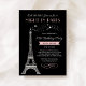 La La La! Este Convite de aniversário de inspiração francesa "Night in Paris" para uma criança de 10 anos (ou mademoiselles de qualquer idade) apresenta uma brilhante torre Eiffel de prata cintilante e um esquema de cor chic de rosas claro, preto. O texto elegante e na moda pode ser completamente personalizado com o nome da aniversariante, sua redação preferida para seu evento especial.
