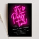 "Hora da Festa!" Modelo de sinal de néon rosa quente que você personaliza para qualquer festa de aniversário etária ou evento especial. Apresentando um na moda, cor-de-rosa e design preto, ele adiciona um toque de talento moderno aos seus preparativos partidários. Impressão seu convite ou faça o download e compartilhe-o por mensagem de texto, e-mail e mídia social no seu telefone celular.