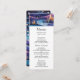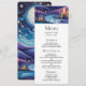 Cartão de cardápio de casamento com uma bela ilustração. Vírus caprichoso e fantasioso. Uma bela paisagem de árvores, montanhas e um rio sinuoso. Mística.
