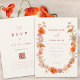 Convite de casamento de outono com código QR único Boho Wildflower. Com suas estonteantes flores aquáticas boêmias outonais pintadas à mão, este convite captura a essência da beleza da natureza, envolvido em um desenho caprichoso de coroa de flores secas. A paleta de cores apresenta tons quentes e terrosos de laranja queimada, marrom, amarelo, verde, roxo e rosa, tornando-o uma escolha versátil para uma celebração de casamento de outono aconchegante.
