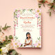 O modelo de convite para casamento indiano Mehndi é um download instantâneo com uma bonita caricatura de noiva em roupa de marfim e florais cor-de-rosa.