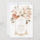 Convite de Casamento Floral e Bege Elegante Blush Botânico Vintage. Defina o tom romântico perfeito para o seu dia especial com este lindo convite de casamento. Com uma impressionante disposição de aquarela de flores cor de blush, rosa empoeirado, branco e creme que se desdobram sobre uma moldura delicada com tom dourado, este design combina com elegância vintage e romance atemporal. O layout sofisticado é ancorado por um floreio dourado intricado e inspirado no barroco na base, criando uma apresentação deslumbrante para os detalhes do seu casamento.