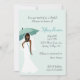 chá de panela Bonito feito em um aquamarine pálido, com gráficos de uma noiva americana bonito, segurando um guarda-chuva de cor aquamarina. O texto é totalmente personalizável e pronto para ser personalizado. O convite adorável que a noiva apreciará, com todas as lembranças do casamento.