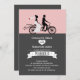Bonita Tandem Bike Bride And Groom Convite de casamento... convites de casamento em tons de cinza cor-de-rosa com uma noiva num vestido de noiva com um pequeno coração vermelho no véu e um noivo em seu terno - modernos anúncios de casamento ... anúncios de casamento totalmente personalizáveis de Ricaso