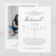 Torne a sua proposta de dama de honra inesquecível com o nosso Cartão de Foto com Calendário Moderno. Este design elegante apresenta um layout de calendário personalizável onde você pode destacar a data especial, combinado com uma moldura de foto sofisticada para um toque pessoal. Com texto editável, você pode criar facilmente cartões de Dama de Honra também. É o complemento perfeito para a caixa de presentes da dama de honra, misturando estilo moderno com sentimento sincero. Personalize com seus detalhes e faça da sua proposta tão memorável quanto o dia em si.