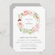 Bela coroa de água com folhagem de jardim e delicadas flores cor de rosa, convite de casamento. Parte de trás do cartão apresenta cor cinza prateado sólido.