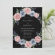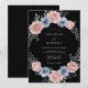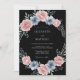 Flores delicadas de aquarela em rosa suave e azul suave criam um motivo circular encantador. Este design romântico apresenta folhagens aéreas e dicas de acentos de frutas azuis profundas contra um fundo escuro. Evoca um sentimento de elegância suave e artística para um dia especial.