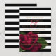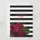 Convite de casamento moderno e elegante rosa vermelha, texto dourado e listras pretas e brancas. Este lindo convite de casamento de listras vermelhas, pretas e douradas é facilmente personalizado para o seu evento, basta adicionar seus detalhes no estilo de fonte e cor, texto e layout de sua escolha.