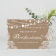 Cartão de Noiva de Luxo em Renda e Luzes de Casamento Rústico em Sacaria - Você Será Minha Dama de Honra?